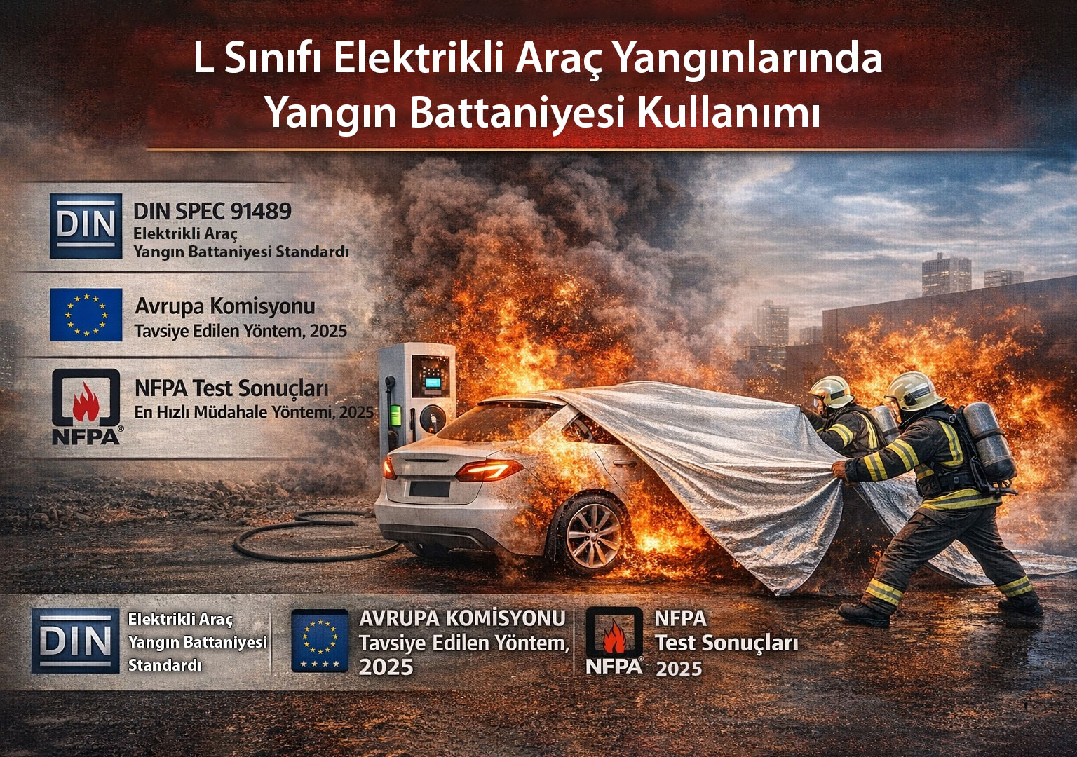 L Sınıfı Lityum-İyon Batarya Yangınları Arasında Yer Alan Elektrikli Araç Yangınlarına Müdahalede Yangın Battaniyesi Kullanımı Yangınlar, insan hayatını tehdit eden, maddi kayıplara yol açan, operasyon ve faaliyetleri sekteye uğratarak ekonomik zarara neden olan ve çevreye ciddi zararlar veren olayların başında gelmektedir. Bu nedenle yangınlar ortaya çıkmadan önce pasif önlemlerin alınması,…