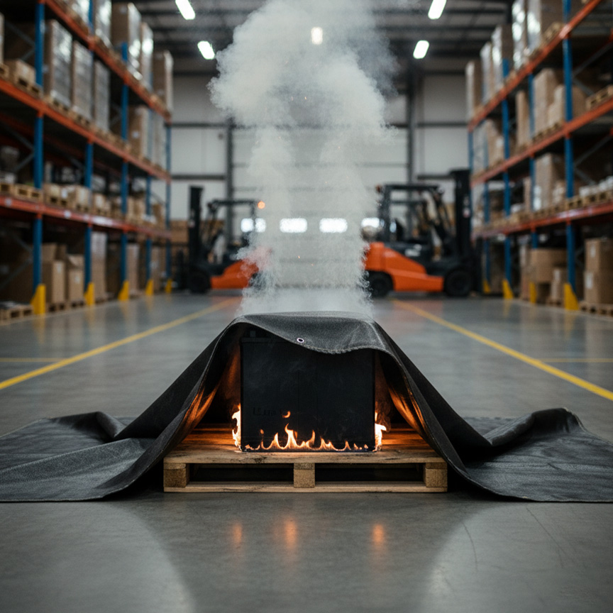 Bu nedenle Nivofire Li-iON Pil Yangın Battaniyesi, Li-iON pil üretim ve depolama tesislerinde, elektronik geri dönüşüm tesislerinde, pil onarım ve bakım istasyonlarında ve elektrikli araç üretim tesislerinde kullanım için idealdir.