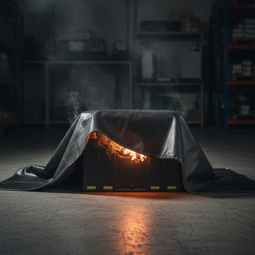 Bu nedenle Nivofire Li-iON Pil Yangın Battaniyesi, Li-iON pil üretim ve depolama tesislerinde, elektronik geri dönüşüm tesislerinde, pil onarım ve bakım istasyonlarında ve elektrikli araç üretim tesislerinde kullanım için idealdir.